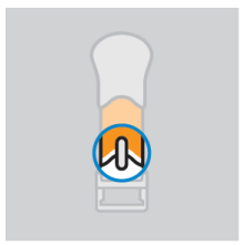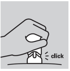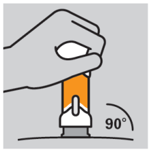 Injeksjonen er fullført når håndtaket er skjøvet helt ned, du hører et klikk og den oransje hoveddelen ikke lenger er synlig.