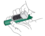 Sett hetten tilbake på flasken. Brukt inhalator og tom flaske legges i en forseglet plastpose og kastes på forsvarlig vis.
