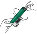 1. Helsepersonell vil gjøre i stand inhalatoren og plassere stroppen over håndleddet ditt.