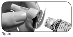 6.4 Grip fatt i den ytre kanylehetten og skru løs kanylen ved å vri i motsatt retning (figur 30).