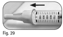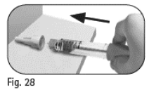 6.3 Fortsett å skyve den tildekkede kanylen mot en fast overflate til du hører et klikk («click») (figur 29).