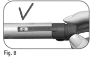 Hvis doseringsvinduet viser «0» har du fått hele dosen. Hvis doseringsvinduet viser et tall som er høyere enn «0», er Pergoveris ferdigfylt penn tom. Du har ikke fått hele den forskrevne dosen, og du må utføre trinn 7.2 nedenfor.