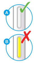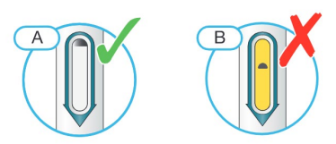 Kontroller at væsken er klar og fargeløs til svakt gul og uten partikler (se bilde A). Bruk ikke pennen hvis dette ikke er tilfelle.