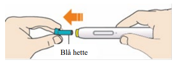 Ikke bruk pennen dersom den blå hetten mangler eller ikke er ordentlig festet.