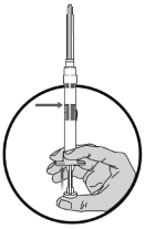 1. For å klargjøre til injeksjon, skru det hvite stemplet inn i endeproppen til proppen begynner å vri seg.