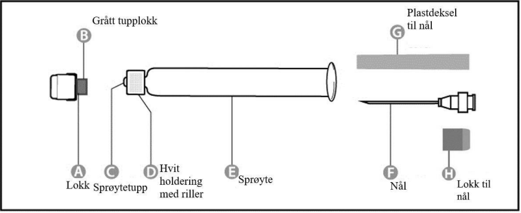 Oppbevar hetteglasset og sprøyten i ytteremballasjen for å beskytte mot lys.