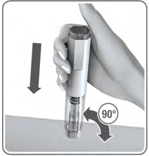 Hold RebiDose i en rett vinkel (90 grader) mot injeksjonsstedet. Skyv pennen mot huden til du føler motstand. Denne handlingen låser opp knappen.