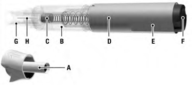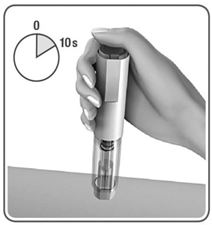 Det er ikke nødvendig å fortsette å trykke på knappen med tommelen etter at injeksjonen har begynt.