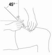 2. Det anbefales å bruke et nytt sted hver gang det gis en injeksjon. Unngå gjentatte injeksjoner på nøyaktig samme sted som er brukt før. Ikke injiser i områder hvor huden er øm, har blåmerker, er rød eller hard. Unngå områder med arr eller strekkmerker.