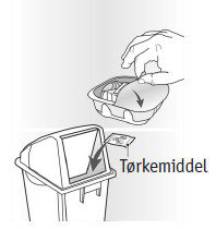Folieboksen inneholder en pose med tørkemiddel for å redusere fuktighet. Kast denne posen med tørkemiddel - ikke åpne, spis eller inhaler den.