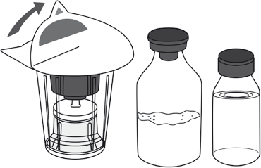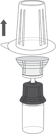 10. Følg trinnene nedenfor for å fjerne hele Mix2Vial-settet fra hetteglasset med Respreeza: