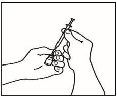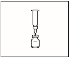 3.2 Ta injeksjonssprøyten og fest den til rekonstitueringskanylen som fortsatt er i hetteglasset.