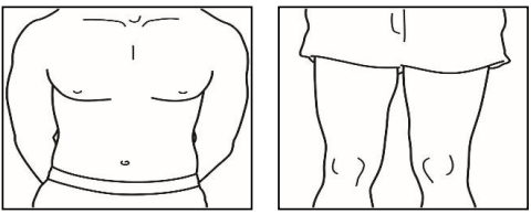 4.1 Finn et område på magen, eller dersom du har smerter eller fortykket vev på magen, bruk låret hvor det er lett for deg å sette en injeksjon (se bilde).
