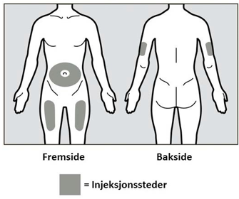Velg et nytt injeksjonssted for hver nye injeksjon, minst 2,5 cm fra forrige injeksjonssted.
