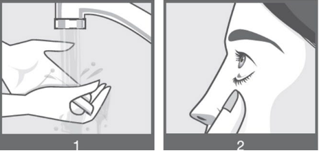 Klem forsiktig på flasken for å frigjøre én dråpe Ryjunea i øyet ditt (bilde 3).