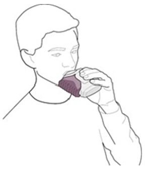3. Plasser munnstykket mot leppene (se figur 3). Pust inn jevnt og dypt gjennom inhalatoren, ikke gjennom nesen.