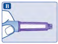 Nålen er dekket av to hetter. Du må fjerne begge hettene. Dersom du glemmer å fjerne begge hettene, vil du ikke få injisert noe oppløsning.