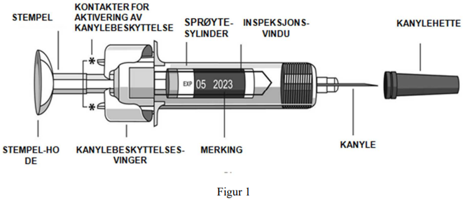 Figur 1 nedenfor viser hvordan en ferdigfylt sprøyte ser ut.