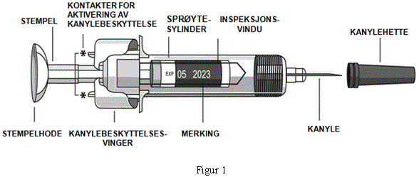 Figur 1 nedenfor viser hvordan en ferdigfylt sprøyte ser ut.