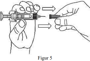 Ta kanylehetten rett av i sprøytens lengderetning og kast den etter injeksjonen. Ikke berør stempelet når du gjør dette.