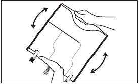 Etter at forseglingssveisene er brutt, skal posen vendes flere ganger for å sikre en homogen blanding uten tegn til atskilte væskefaser.