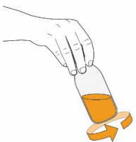 Snurr flasken forsiktig i 30 sekunder for å blande miksturen.