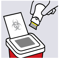 Legg den brukte ferdigfylte pennen i en kanylebøtte rett etter bruk.