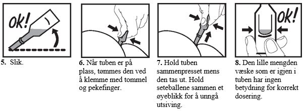 Anvendes umiddelbart etter åpning av folieposen. Den vanlige dosen er: