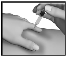 3. Hold sprøyten som en blyant eller en pil, og før nålen inn i hudfolden slik at den danner en vinkel på 45º til 90º med hudoverflaten.