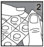 3 - Begynn fra kanten der forseglingen er hevet, og trekk av folien på baksiden for å få ut tabletten.