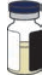 hetteglasset og den klargjorte sprøyten inneholder en gul-til-brun oppløsning uten partikler