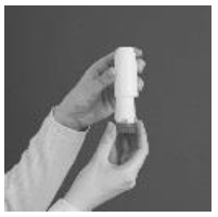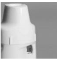 2. Hold inhalatoren rett opp med den røde dreieskiven ned.