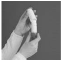 Ikke prøv å fjerne eller vri munnstykket, da det skal sitte fast på inhalatoren.