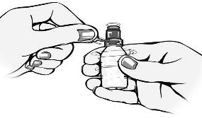 10. Rist flasken én gang nedover for å bli kvitt gjenværende oppløsning fra toppen. Ikke berør eller tørk av toppen.