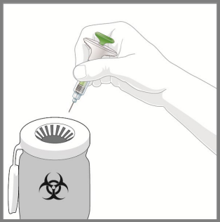 IKKE sett kanylehetten på igjen. Kast sprøyten i en kanylebøtte eller som anvist av lege, apotek eller sykepleier.