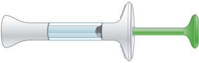 Når injeksjonen er ferdig skal du kunne se den grønne stempelstangen fra topp til bunn i hoveddelen av sprøyten.