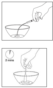 Hvis det er noe innhold igjen i den andre bollen, skyll bollen med litt vann og la barnet drikke resten av blandingen. For barn som ikke kan drikke fra en bolle, bruk en skje eller flaske for å gi barnet resten av miksturen.