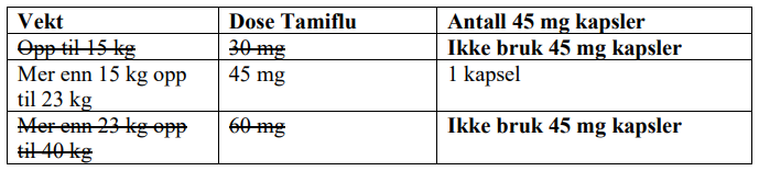 Mengde Tamiflu mikstur |