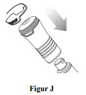 Husk å sette lokket på applikatoren igjen og applikatoren tilbake over pumpen. Se figur J.