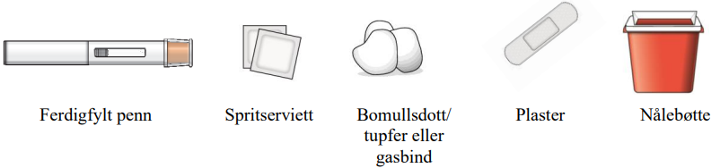 Du skal ikke kaste den ferdigfylte pennen i husholdningsavfallet.