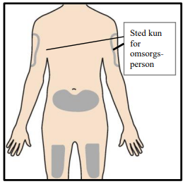 En omsorgsperson kan sette injeksjonen i overarm, lår eller mage.