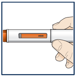Press pennen bestemt ned til du ikke kan se den oransje nålebeskytteren.