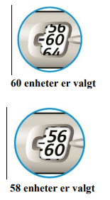 Dersom det ikke er nok enheter igjen i pennen til hele din dose så vil dosevelgeren stoppe ved gjenværende antall enheter i pennen.