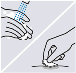 Ikke berør, vift eller blås på injeksjonsstedet etter at du har rengjort det.