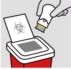 Legg den brukte ferdigfylte pennen i en beholder for skarpe gjenstander umiddelbart etter bruk.