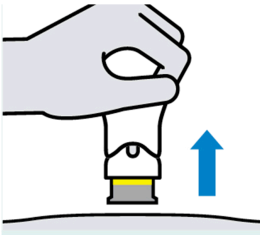 La den ferdigfylte pennen ligge i ytterkartongen på en rett flate ved romtemperatur i ca. 30 minutter før bruk.