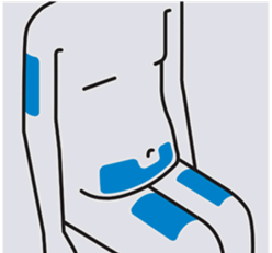 Ikke bruk området på 5 centimeter rundt navlen. -