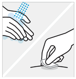 Ikke berør, vift eller blås på injeksjonsstedet etter at du har rengjort det.