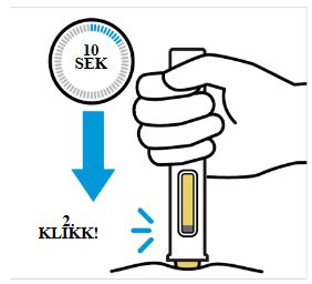 Fortsett å holde den ferdigfylte pennen fast mot huden i ca. 10 sekunder til du hører det andre klikket