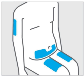 Ikke injiser i hud som er øm, har blåmerker, rød, tykk, hard eller skjellende. Unngå områder med arr eller strekkmerker.